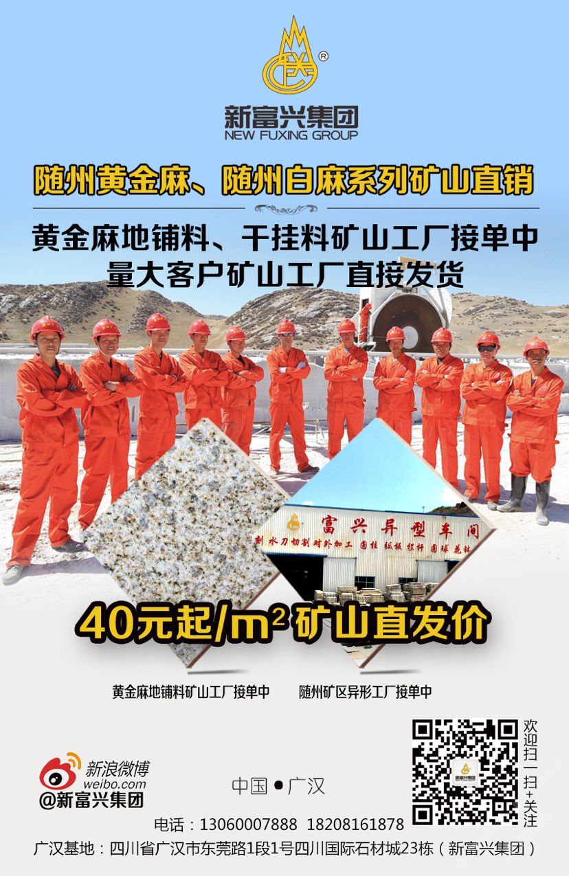 新富興集團(tuán)旗下礦業(yè)板塊國內(nèi)擁有6座大型礦山分別分布在福建、湖南、湖北、新疆等省市盛產(chǎn):664#羅源紅、隨州黃金麻、黃金鉆、卡基諾金、隨州白麻、新疆豹皮鉆、焉耆白麻、湖南芝麻灰等花崗巖;石材板塊分別在四川省以及新疆維吾爾自治區(qū);新疆擁有三家企業(yè)其中四川省范圍內(nèi)擁有3個大型石材加工基地;成都工廠位于成都沙西線主營:花崗巖工程建設(shè)用石材;2013年成立廣漢富興石業(yè)有限公司在四川廣漢市修建兩家工廠分別位于:四川省廣漢市東莞路一段1號四川國際石材城23棟和29棟;總占地面積55畝。成都工廠負(fù)責(zé)銷售自有礦山的石材產(chǎn)品以及其他品種進(jìn)口、國產(chǎn)花崗巖石材產(chǎn)品大量使用于市政工程、房地產(chǎn)以及大型公共設(shè)施;廣漢工廠除專業(yè)批發(fā)自有礦山:福建、湖北、湖南、四川、新疆等省市自有礦山石材產(chǎn)品外,大理石是新富興集團(tuán)四川地區(qū)石材產(chǎn)業(yè)的主力產(chǎn)品,早在1998年開始新富興集團(tuán)前身企業(yè)之一“成都市金牛區(qū)富興石材加工廠”就已經(jīng)成為西南地區(qū)的進(jìn)口大理石供應(yīng)商之一;現(xiàn)目前集團(tuán)規(guī)模不斷擴(kuò)大并在福建、湖南、湖北、四川、新疆等地區(qū)開發(fā)6座大型礦山并有著的礦山資源優(yōu)勢掌握了產(chǎn)品的源頭以及多年積攢的社會的人脈資源與管理團(tuán)隊(duì)擁有各種先進(jìn)的技術(shù)與設(shè)備;承接國內(nèi)外各種異形大理石、花崗石加工,廠區(qū)擁有先進(jìn)的水刀設(shè)備多臺擁有紅外線橋式切割設(shè)備數(shù)十臺,全自動電腦仿形設(shè)備數(shù)十臺,全自動線條磨邊流水線設(shè)備多臺,異形圓柱設(shè)備多臺,異形車床等眾多異形設(shè)備同時擁有熟練的技師配合優(yōu)秀的管理者及高效率的服務(wù)團(tuán)隊(duì)使得新富興集團(tuán)四川地區(qū)石材產(chǎn)業(yè)板塊一直處于當(dāng)?shù)匚恢?,為集團(tuán)業(yè)績做出杰出的貢獻(xiàn)。 從2003年開始,分別通過了ISO9001、ISO14001質(zhì)量管理體系認(rèn)證和ISO18000職業(yè)健康管理體系認(rèn)證。并在各城市重點(diǎn)工程建設(shè)項(xiàng)目及進(jìn)出口貿(mào)易創(chuàng)下了佳績。形成一整套較為完善的管理體系?!熬屑?xì)磨、誠信服務(wù);面向全球、美化世界”為公司的經(jīng)營宗旨。www.fxstone.com