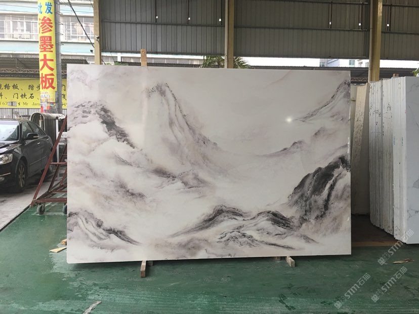 大量批發(fā),平價(jià)人造石,崗石線條,3D滲墨大板:爵士白,魚(yú)肚白,山水畫(huà)。