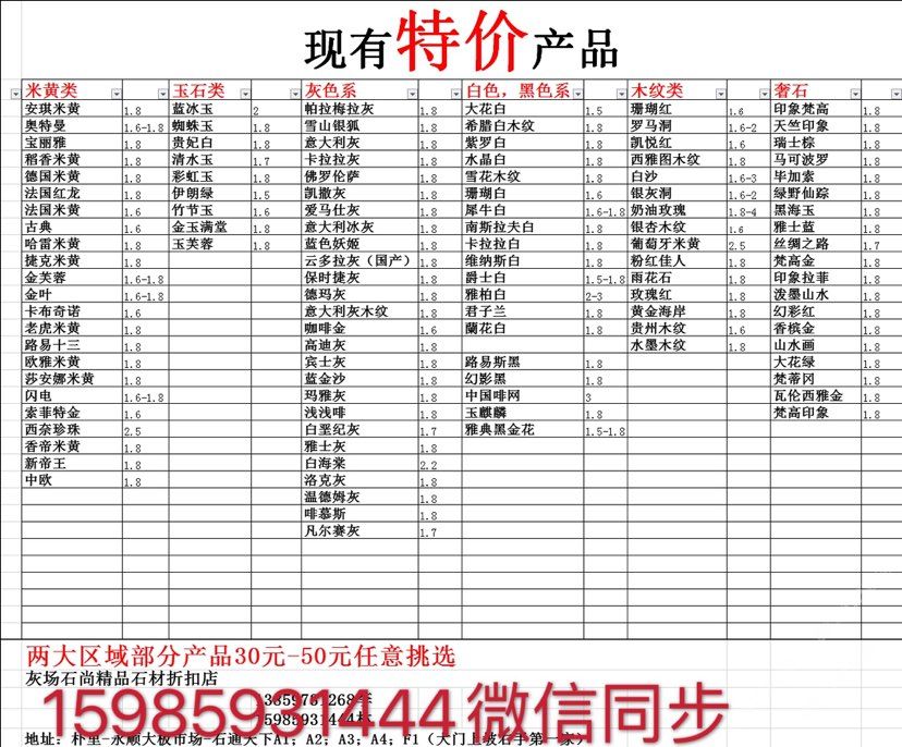 現(xiàn)有100000平大板特價(jià)(百來個(gè)品種),低至30元起