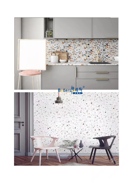 隨著工藝水平和材料品質(zhì)的巨大突破,新型預(yù)制無機(jī)水磨石采用環(huán)保型無機(jī)粘劑,不含樹脂膠水等,通過高頻高壓抽真空震動壓制而成,硬度更高更耐磨,施工更靈活方便。憑借其時髦大氣的設(shè)計呈現(xiàn)出一種慢慢的感