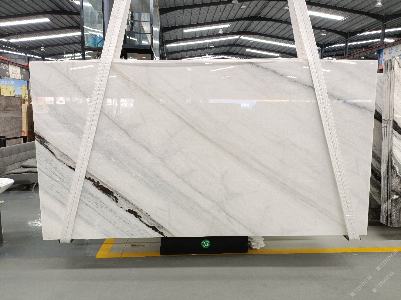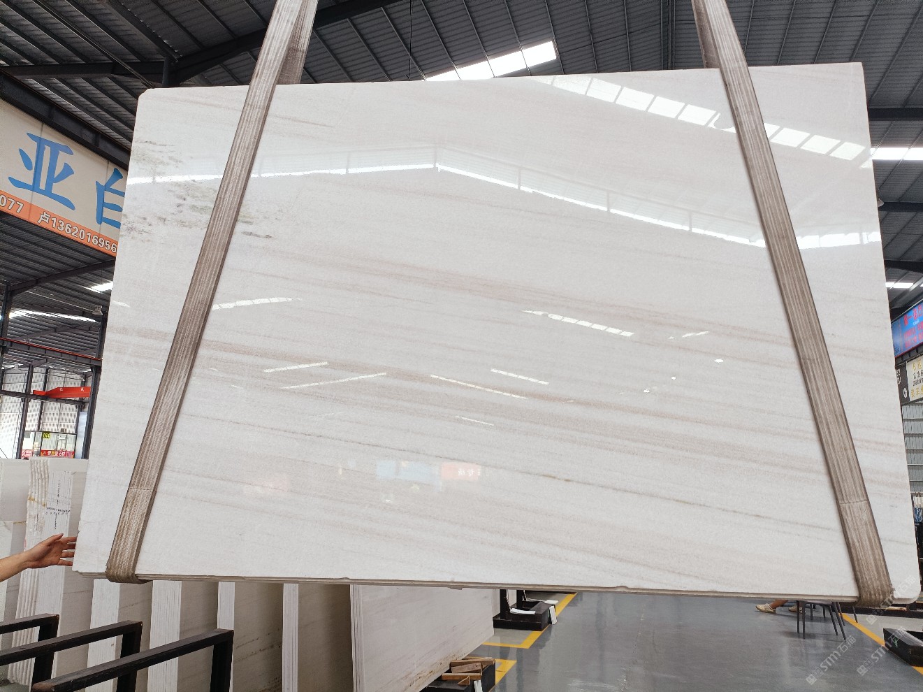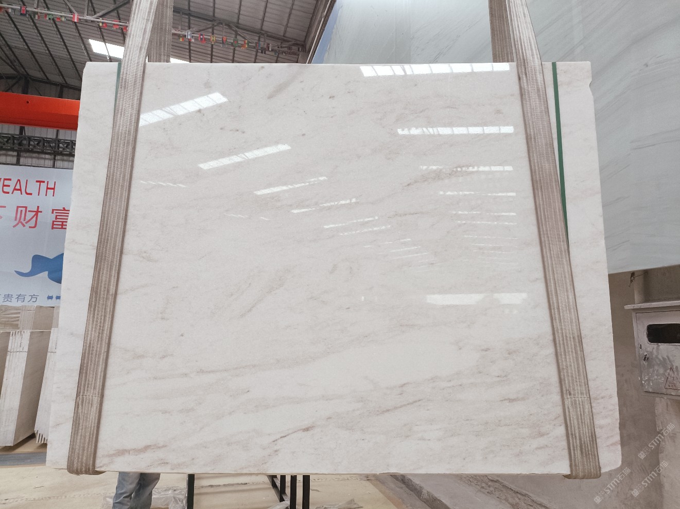 云浮站石材公司開發(fā)的歐亞白獨(dú)立礦山,專屬道路,礦口面積約 725 畝,證件齊全。今年礦口開采出直紋,亂紋優(yōu)質(zhì)大板材料,礦山采用單面墻平臺開采方式,10臺繩鋸、5臺鏟車、5臺勾機(jī)、一臺 30 噸叉車,共有職工40人,已有兩個開采平臺。礦山已開采多年,道路、設(shè)施都已成熟,現(xiàn)產(chǎn)能穩(wěn)定增長。品質(zhì)非常穩(wěn)定,一石兩面分別可以產(chǎn)出直紋和亂紋兩種紋路,材質(zhì)為細(xì)膩的玉質(zhì)品體。