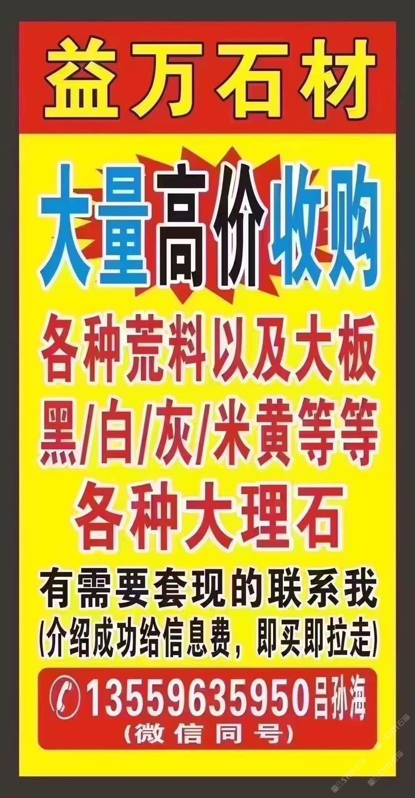 `【長(zhǎng)期大量??高價(jià)求購(gòu)】大板,荒料,多少量都可以;云多拉灰,奧特曼,白玉蘭,南斯拉夫白,溫德姆灰,星耀灰,保加利亞灰,奢石等各種大理石;需要:套現(xiàn)、清倉(cāng)、換品種的速來(lái),介紹成功給信息費(fèi),現(xiàn)收現(xiàn)拉!微信:13559635950呂孫海微信同號(hào)
