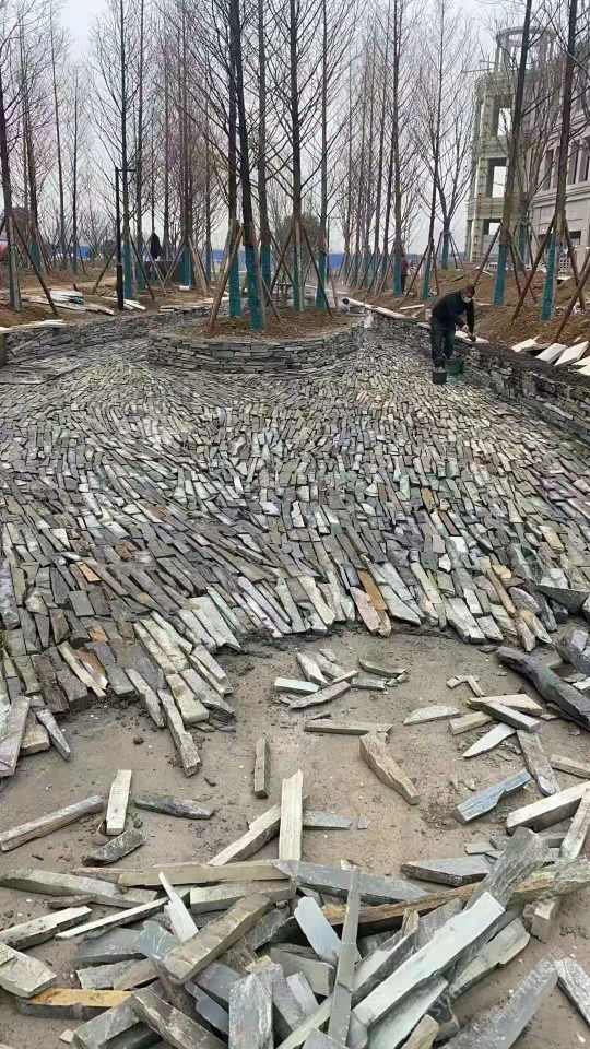 青石板 黑板巖亂形條 不規(guī)則碎拼工程案例