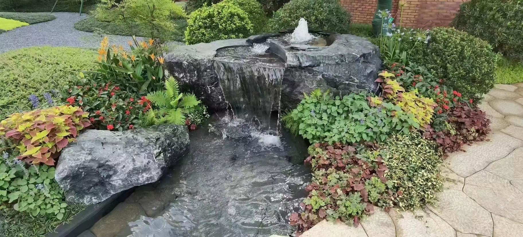 黑山石地產(chǎn)應(yīng)用,流水生財,黑色永恒經(jīng)典搭配
