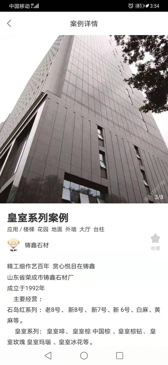鑄鑫石材 聯(lián)系人:姜楠    136****3345 查看 0631-****828 查看 主營范圍: 大板批發(fā)、荒料、異型加工、花崗巖加工、礦山、 企業(yè)地址:山東威海您好 我是山東省 榮成市 石島紅產(chǎn)地 鑄鑫石材有限公司 公司成立于1992年 主要經(jīng)營:石島紅老8# 新8# 7# 6# 皇室系列 紫晶鉆 白麻 榮成灰等優(yōu)質(zhì)產(chǎn)品,A級荒料 火燒板 光板 荔枝面 復(fù)古