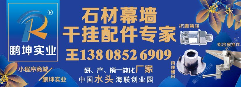 發(fā)布信息: 干掛,背栓,錨栓,不銹鋼鋁合金掛件,復(fù)合板配件! 鵬坤實業(yè),生產(chǎn)工廠位于水頭海聯(lián)工業(yè)區(qū)! 研發(fā),生產(chǎn),銷售!