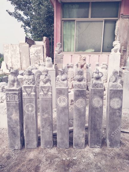仿古雕塑:栓馬樁。石欄桿、墓碑、浮雕、仿古石