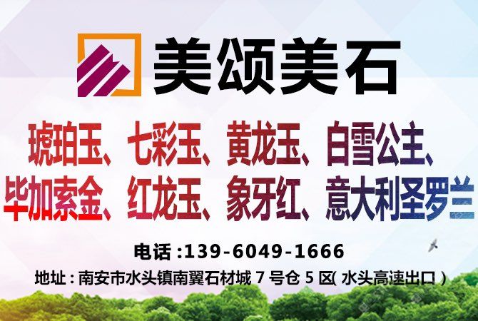 美頌美石 聯(lián)系人:陳先生    139****1666 查看 139****1666 查看 主營(yíng)范圍: 大理石加工、荒料、礦山、石材外貿(mào)、大板批發(fā)、石材雕刻、石材工藝品、玉石加工、 企業(yè)地址:福建南安水頭鎮(zhèn)奎峰北路南翼石材城7號(hào)倉(cāng)2區(qū)