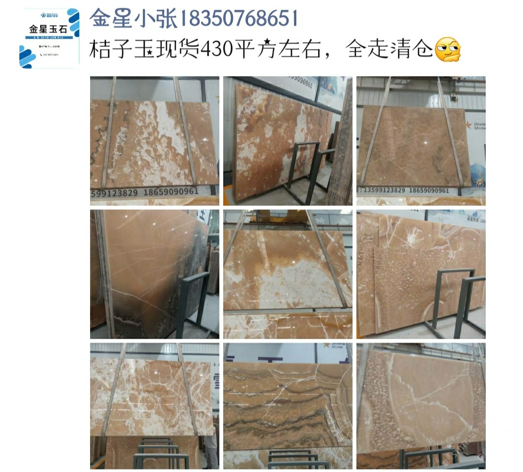 發(fā)布信息: 好消息!好消息!好消息! 由于產(chǎn)品調(diào)整:部分玉石咖啡玉,紅寶石,藍玉,桔子玉,清倉處理價?。?!需要的趕緊行動!聯(lián)系電話:18350768651~ 鵬翔石材城大道H7金星玉石