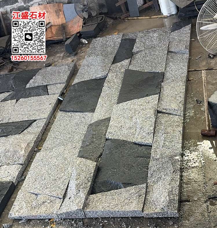 G655芝麻灰芝麻黑雙色拼自然面背景墻文化石劈裂石
