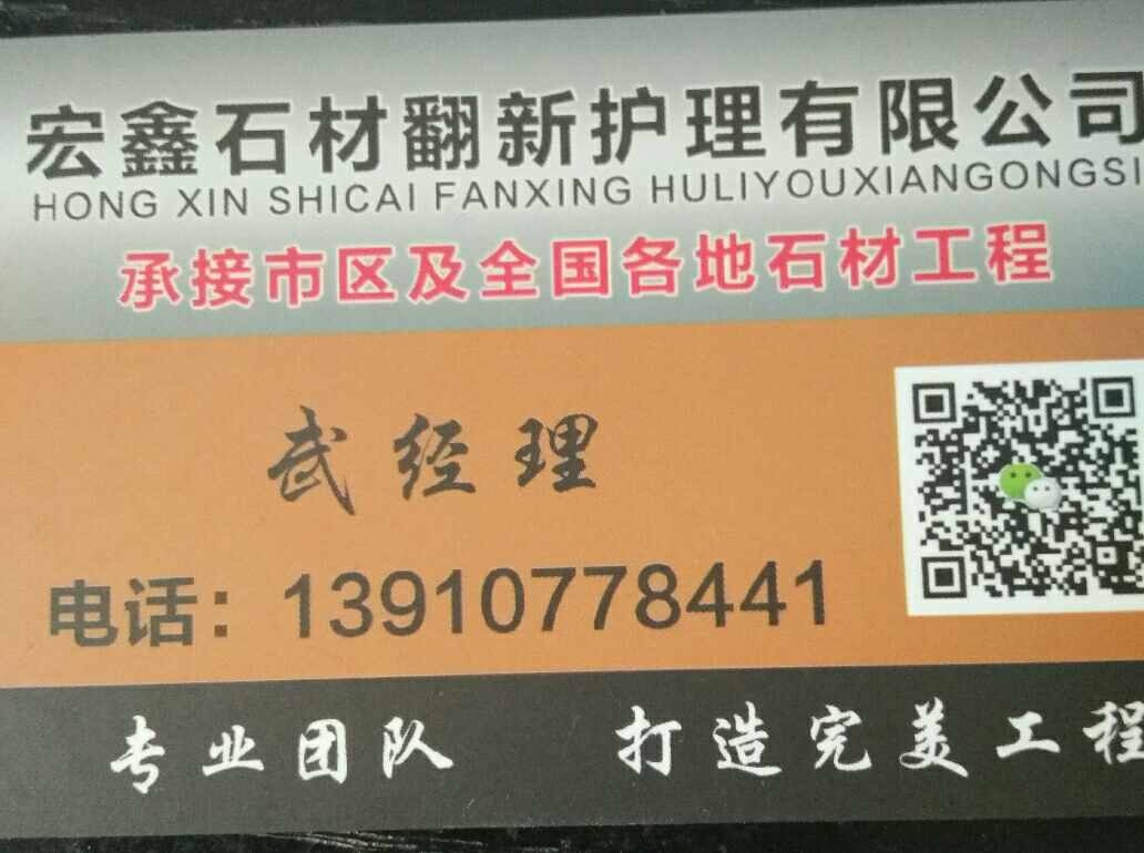 香河石材翻新打磨結(jié)晶 聯(lián)系人:武艷波    139****8441 查看 139****8441 查看 主營范圍: 石材輔料及特殊工藝、 企業(yè)地址:江蘇徐州繕維國際石材商城