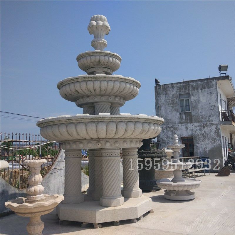 石雕黃繡石花崗巖噴泉現(xiàn)貨 出口芝麻白石頭石雕噴泉