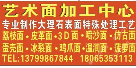 發(fā)布信息: 專業(yè)加工大理石荔枝面,拉絲面,3D面,皮革面,噴砂面,蛋殼面,雞爪面,冰裂面,菠蘿面,溫潤(rùn)面,仿古面,聯(lián)系電話18065353113,