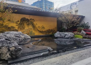 黑山石造景庭院假山流水效果
