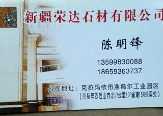 新疆托里縣天盛礦業(yè)有限公司主營產(chǎn)品:印度紅(新礦),天山翡翠,雪花青,鉆石金麻,菊花黃企業(yè)地址:新疆克拉瑪依克拉瑪依后上托里準(zhǔn)噶爾石材工業(yè)區(qū)