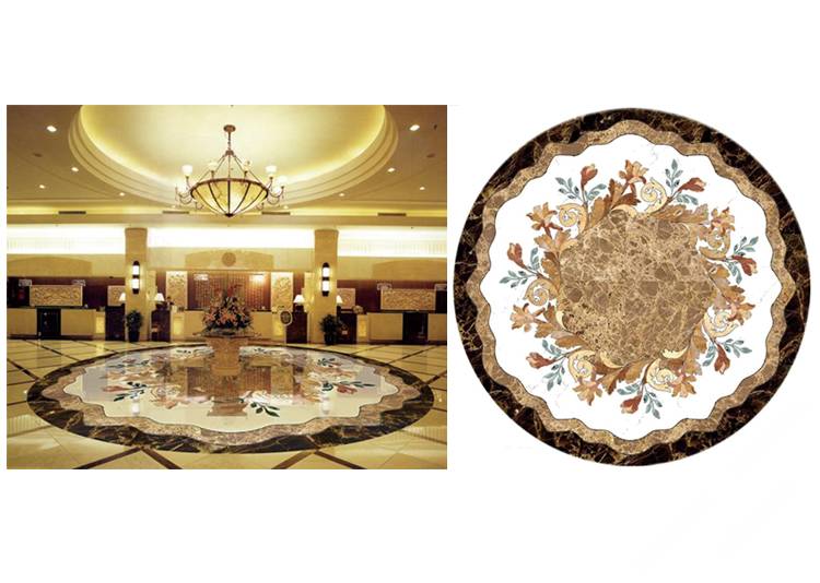 描述:石材水刀拼花是目前市場上最常見的水刀拼花,是利用水刀將各種顏色的石材切割成需要的造型,再用膠水拼接而成。大理石,花崗巖,玉石和人造石都是很好的材料選擇?,F(xiàn)階段石材拼花主要應(yīng)用在星級(jí)酒店,大型商場,別墅,家裝的客廳,餐廳和玄關(guān),是目前石材裝飾中效果最好最為絢麗高貴的裝飾產(chǎn)品。