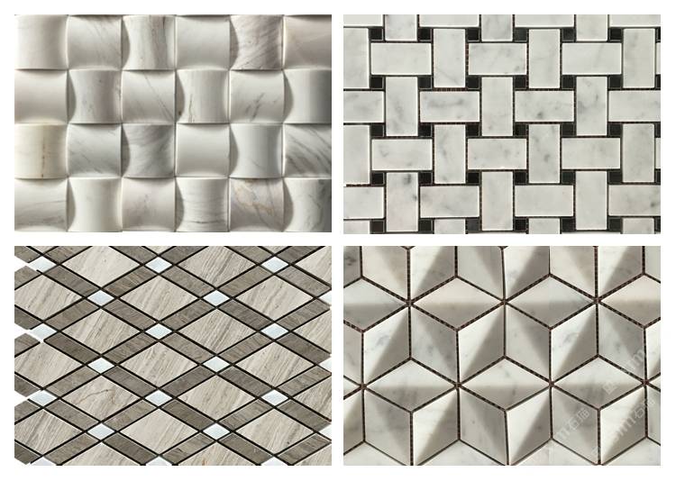 描述:石材馬賽克是將天然石材開介、切割、打磨成各種規(guī)格、形態(tài)的馬賽克塊拼貼而成的馬賽克,是最古老和傳統(tǒng)的馬賽克品種,最早的馬賽克就是用小石子鑲嵌、拼貼而成,石材馬賽克具有純自然、天然的質(zhì)感,有非常自然的天然石材紋理,風(fēng)格自然、古樸、高雅,是馬賽克家族中檔次最高的種類,根據(jù)其處理工藝的不同,有啞光面和亮光面兩種形態(tài),規(guī)格有方形、條形、圓角形、圓形和不規(guī)則平面、粗糙面等。用這種材料裝飾墻壁或者地面,既保留了天然石材本身的質(zhì)樸感,又使圖案豐富。 天然大理石馬賽克是采用機切成很小顆粒,純手工拼制而成,由于馬賽克材料具有耐久性,不會因環(huán)境時間而剝落、變色,屬于高檔裝飾產(chǎn)品,色澤純正,典雅大方,具有經(jīng)久耐用、永不褪色的特點。廣泛應(yīng)用于各類建筑裝修、室內(nèi)裝飾,是理想的高檔裝飾產(chǎn)品。